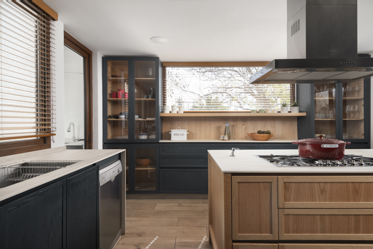 Repasando esta intervención, todavía nos impresiona el cambio. Nadie imaginaría que antes no existía una ventana hacia el patio exterior. Hoy, ese vacío se transformó en un cuadro vivo entre los dos muebles altos, un lugar pensado para ordenar los objetos más lindos de la cocina, esos que antes quedaban escondidos en un cajón y solo salían en ocasiones especiales.